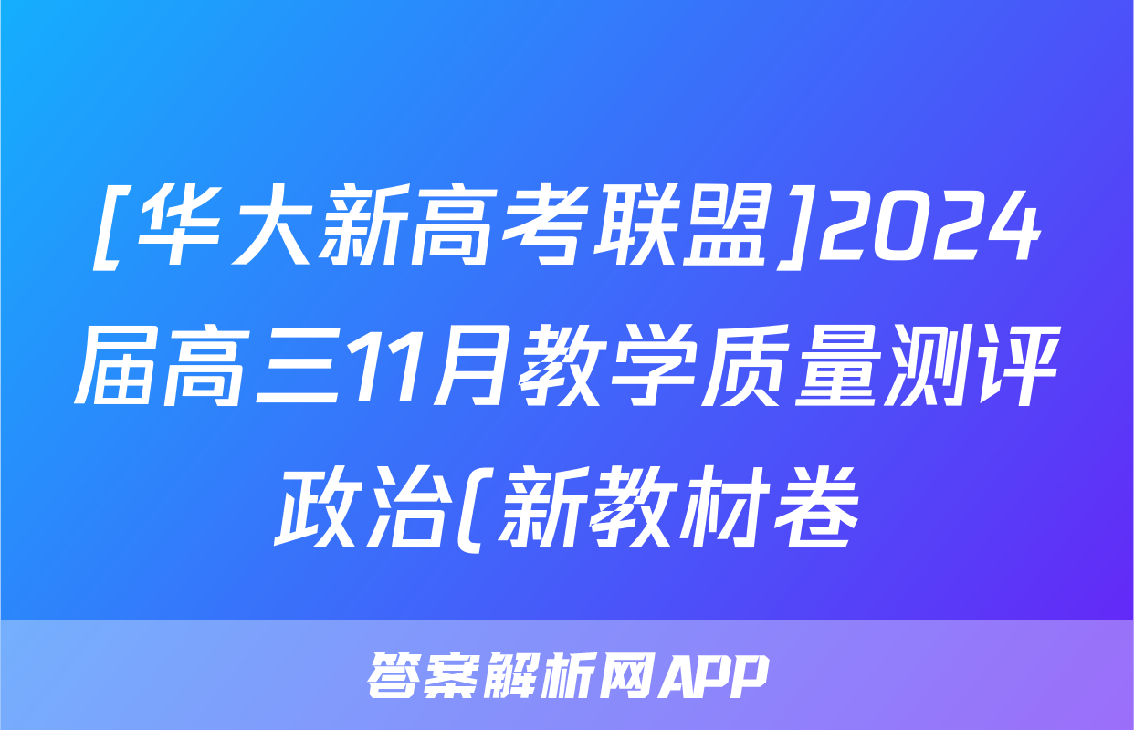 [华大新高考联盟]2024届高三11月教学质量测评政治(新教材卷)答案正在持续更新,目前2024届最新高考模拟示范卷答案网为大家整理了相关试题及答案,供大家查缺补漏,高效提升成绩。