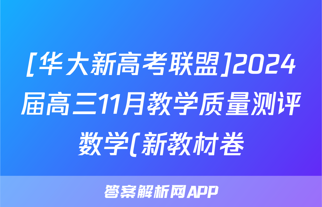 [华大新高考联盟]2024届高三11月教学质量测评数学(新教材卷)答案正在持续更新,目前2024届最新高考模拟示范卷答案网为大家整理了相关试题及答案,供大家查缺补漏,高效提升成绩。