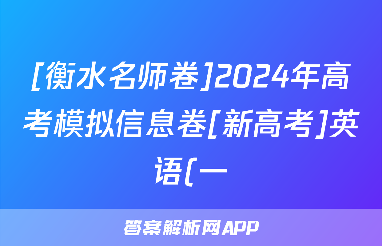 [衡水名师卷]2024年高考模拟信息卷[新高考]英语(一)1答案正在持续更新,目前2024届最新高考模拟示范卷答案网为大家整理了相关试题及答案,供大家查缺补漏,高效提升成绩。