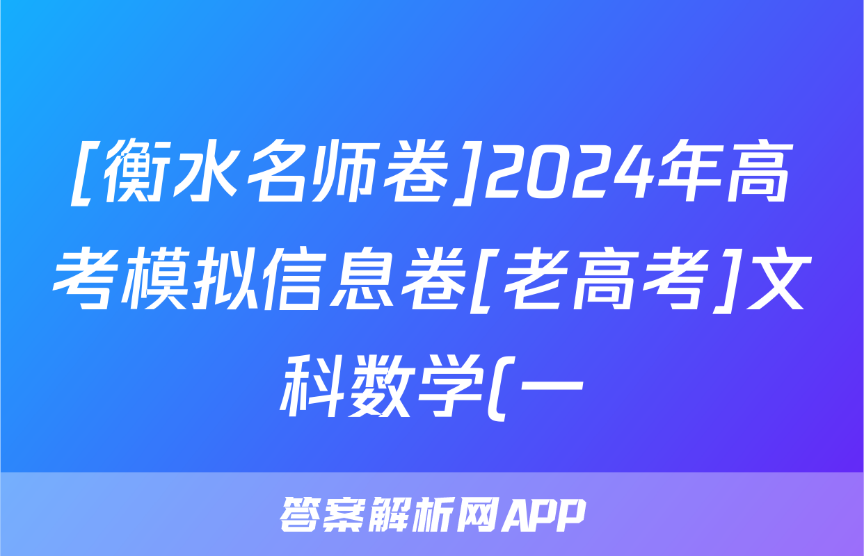 [衡水名师卷]2024年高考模拟信息卷[老高考]文科数学(一)1试题