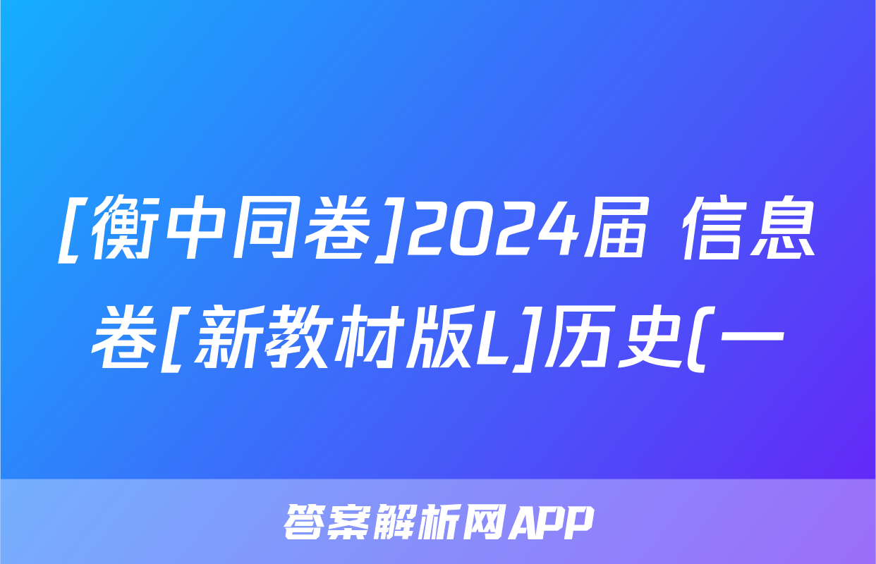 [衡中同卷]2024届 信息卷[新教材版L]历史(一)1试题正在持续更新,目前2024届最新高考模拟示范卷答案网为大家整理了相关试题及答案,供大家查缺补漏,高效提升成绩。