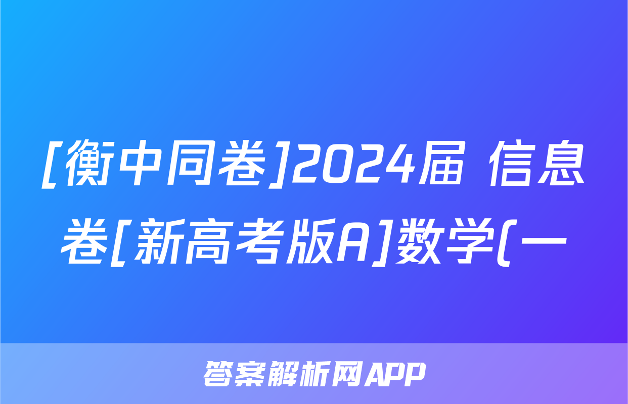 [衡中同卷]2024届 信息卷[新高考版A]数学(一)1答案正在持续更新,目前2024届最新高考模拟示范卷答案网为大家整理了相关试题及答案,供大家查缺补漏,高效提升成绩。