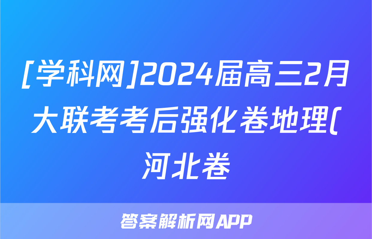 [学科网]2024届高三2月大联考考后强化卷地理(河北卷)试题正在持续更新,目前2024届最新高考模拟示范卷答案网为大家整理了相关试题及答案,供大家查缺补漏,高效提升成绩。