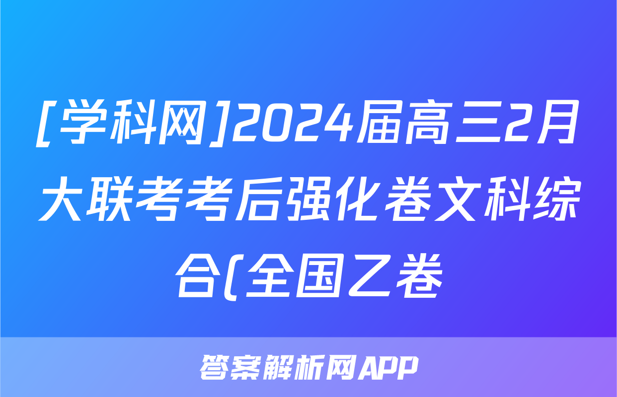 [学科网]2024届高三2月大联考考后强化卷文科综合(全国乙卷)试题正在持续更新,目前2024届最新高考模拟示范卷答案网为大家整理了相关试题及答案,供大家查缺补漏,高效提升成绩。