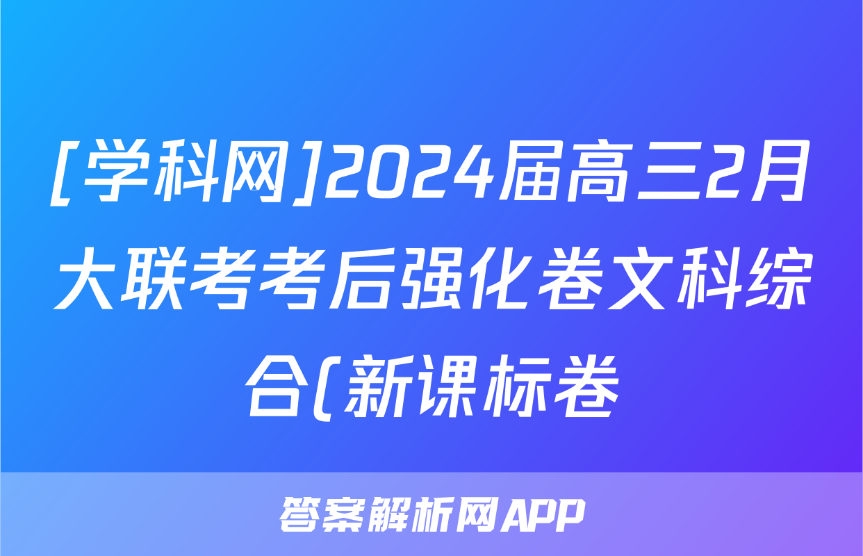 [学科网]2024届高三2月大联考考后强化卷文科综合(新课标卷)(新疆专用)答案正在持续更新,目前2024届最新高考模拟示范卷答案网为大家整理了相关试题及答案,供大家查缺补漏,高效提升成绩。