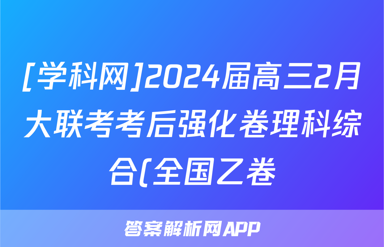 [学科网]2024届高三2月大联考考后强化卷理科综合(全国乙卷)答案正在持续更新,目前2024届最新高考模拟示范卷答案网为大家整理了相关试题及答案,供大家查缺补漏,高效提升成绩。