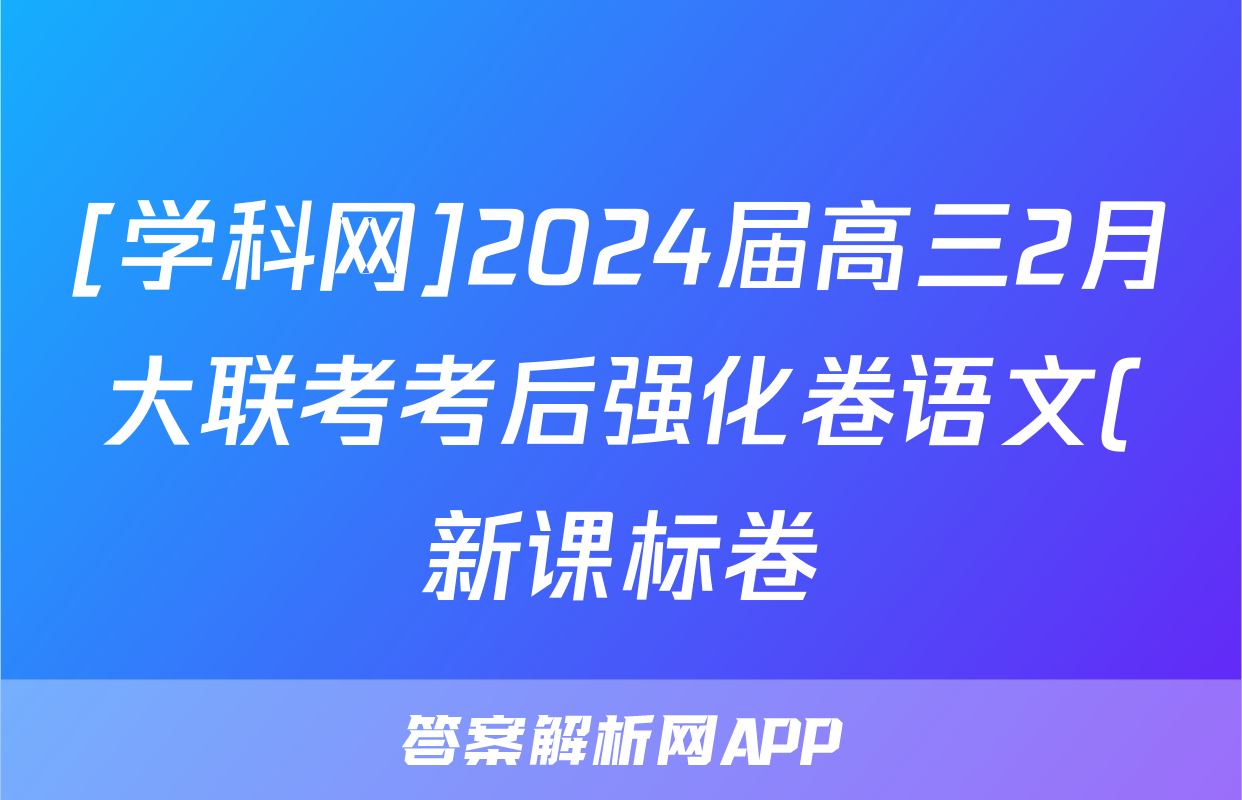 [学科网]2024届高三2月大联考考后强化卷语文(新课标卷)(新疆专用)试题正在持续更新,目前2024届最新高考模拟示范卷答案网为大家整理了相关试题及答案,供大家查缺补漏,高效提升成绩。