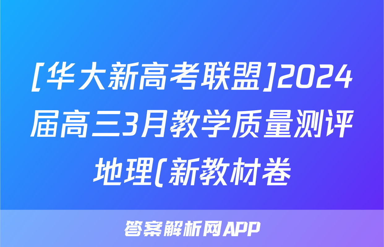 [华大新高考联盟]2024届高三3月教学质量测评地理(新教材卷)答案正在持续更新,目前2024届最新高考模拟示范卷答案网为大家整理了相关试题及答案,供大家查缺补漏,高效提升成绩。