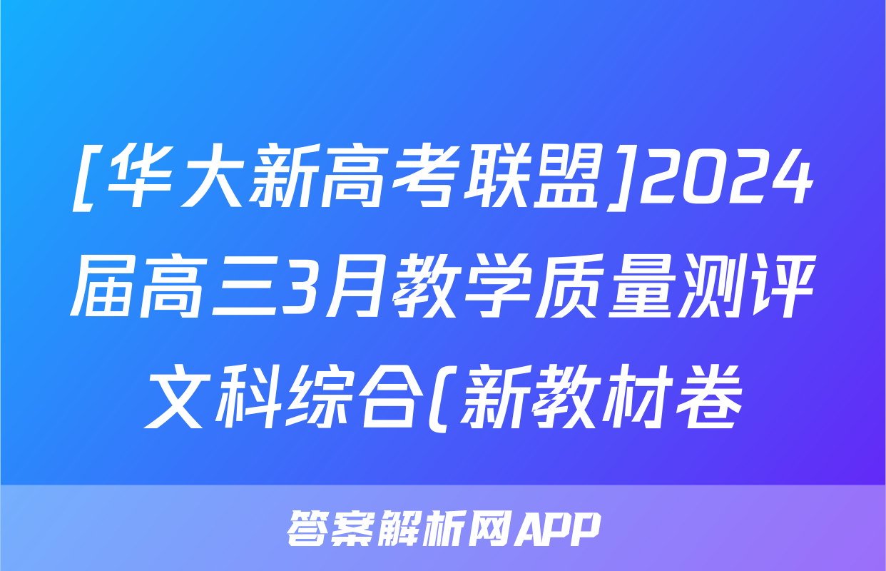 [华大新高考联盟]2024届高三3月教学质量测评文科综合(新教材卷)试题正在持续更新,目前2024届最新高考模拟示范卷答案网为大家整理了相关试题及答案,供大家查缺补漏,高效提升成绩。