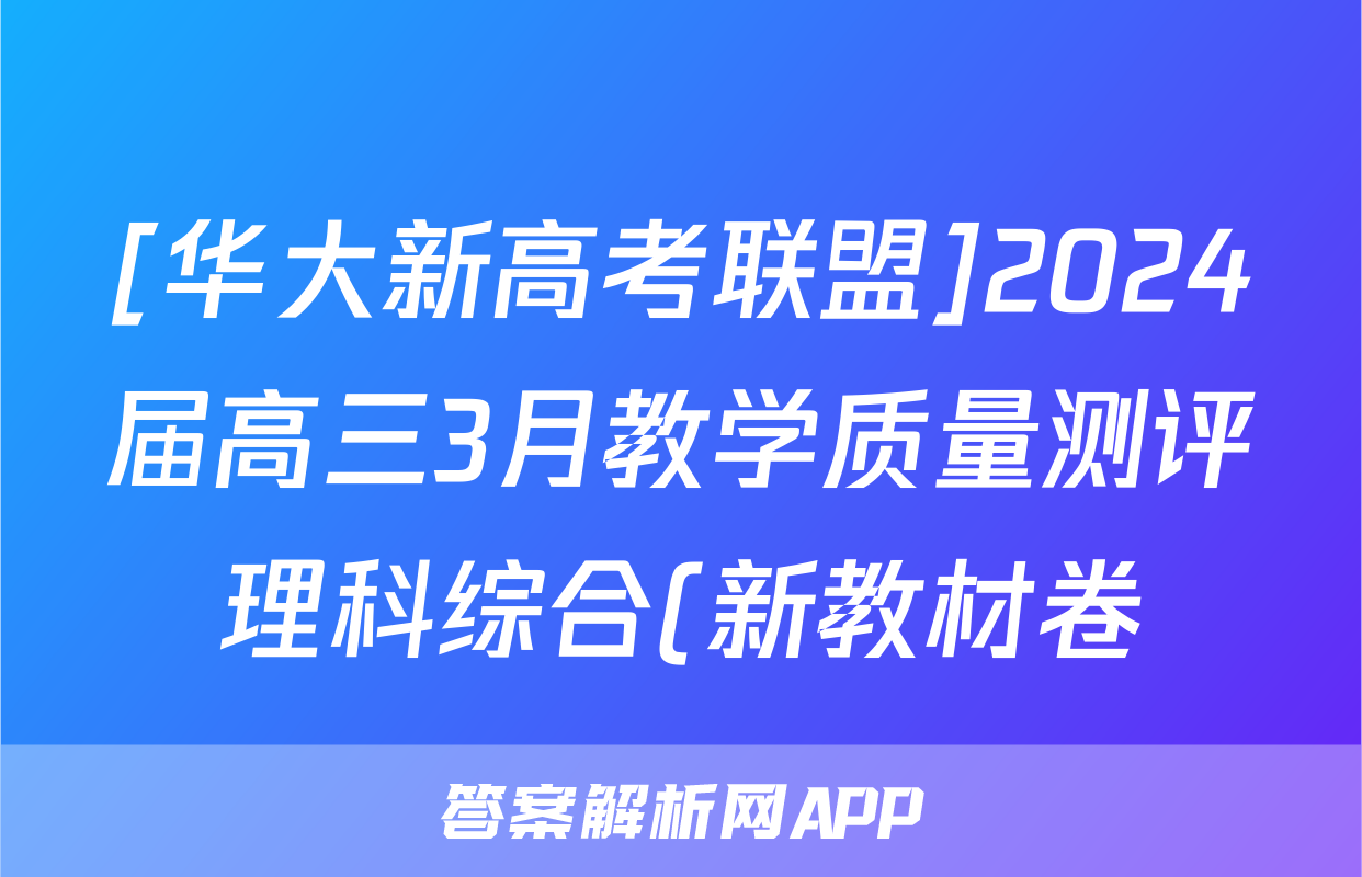 [华大新高考联盟]2024届高三3月教学质量测评理科综合(新教材卷)试题正在持续更新,目前2024届最新高考模拟示范卷答案网为大家整理了相关试题及答案,供大家查缺补漏,高效提升成绩。
