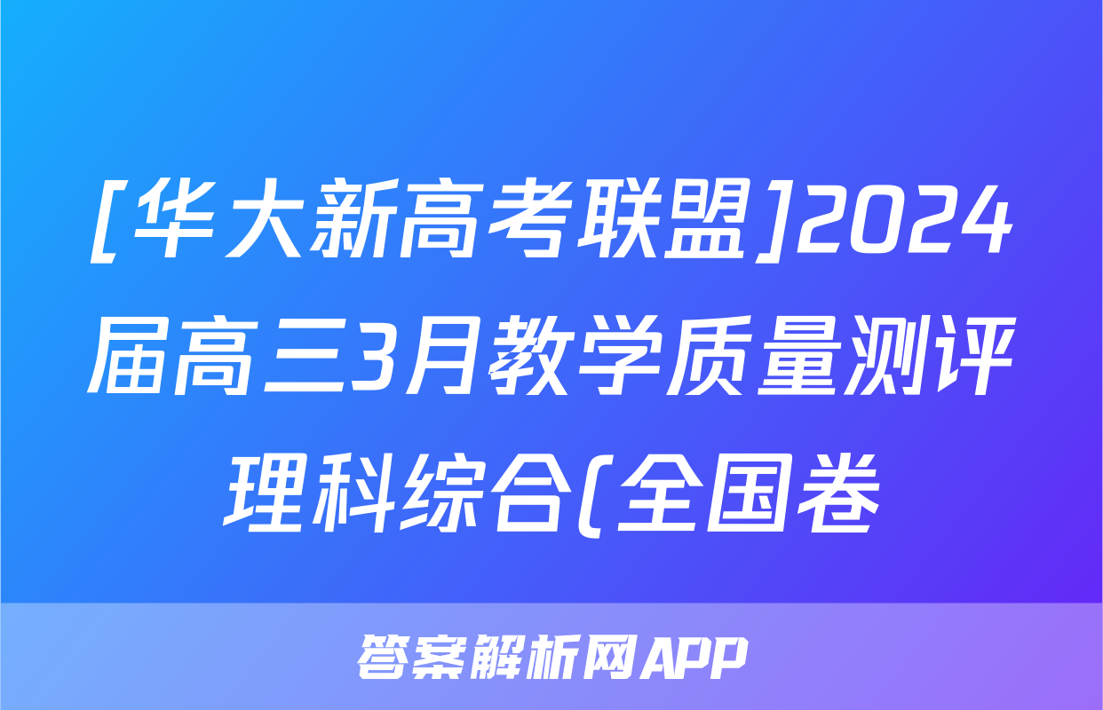 [华大新高考联盟]2024届高三3月教学质量测评理科综合(全国卷)试题