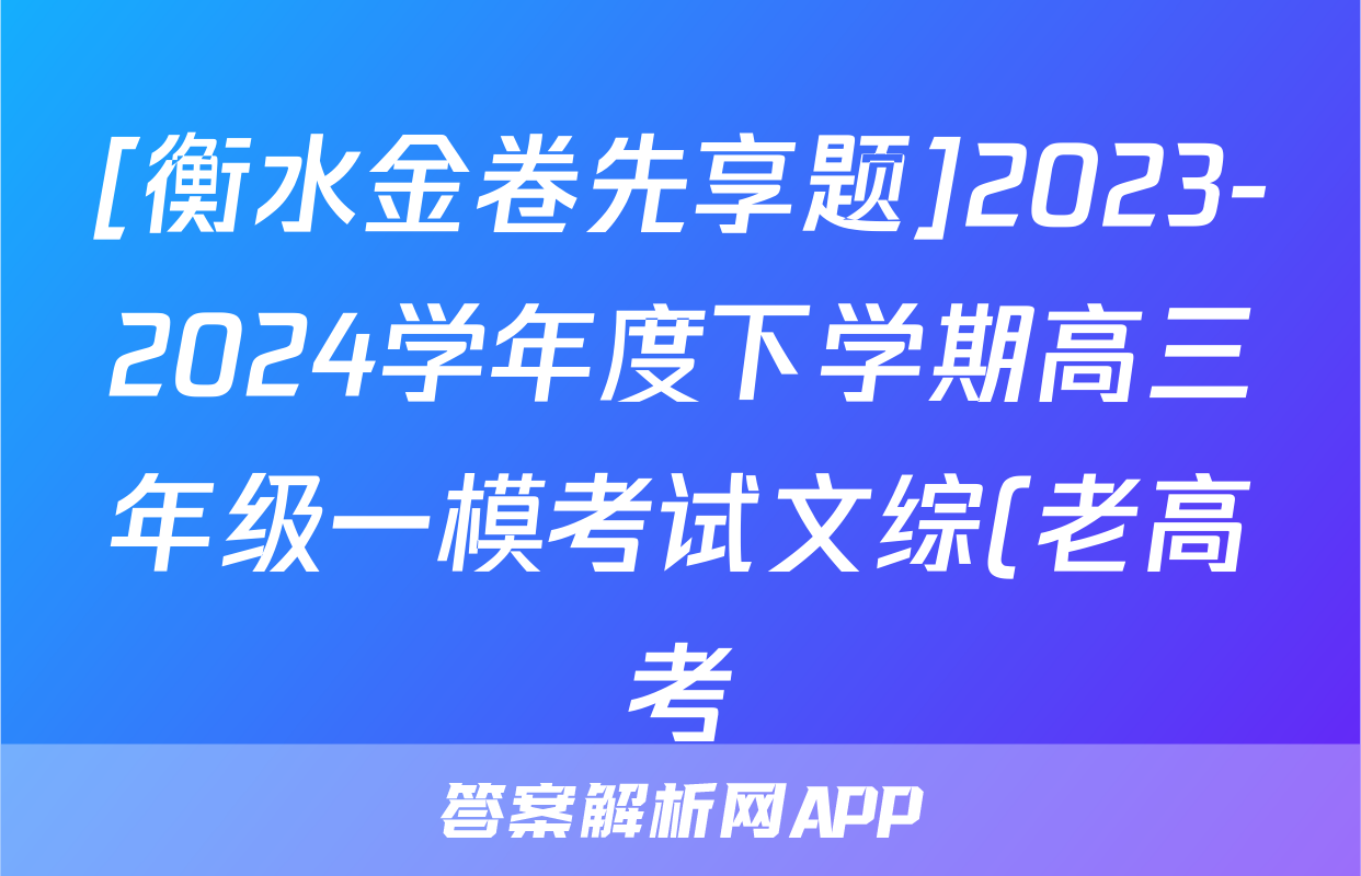 [衡水金卷先享题]2023-2024学年度下学期高三年级一模考试文综(老高考)试题正在持续更新,目前2024届最新高考模拟示范卷答案网为大家整理了相关试题及答案,供大家查缺补漏,高效提升成绩。