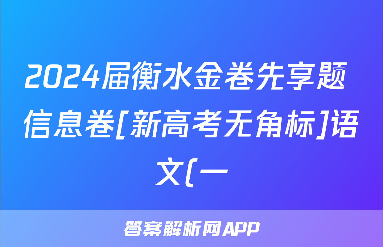 2024届衡水金卷先享题 信息卷[新高考无角标]语文(一)1试题正在持续更新,目前2024届最新高考模拟示范卷答案网为大家整理了相关试题及答案,供大家查缺补漏,高效提升成绩。