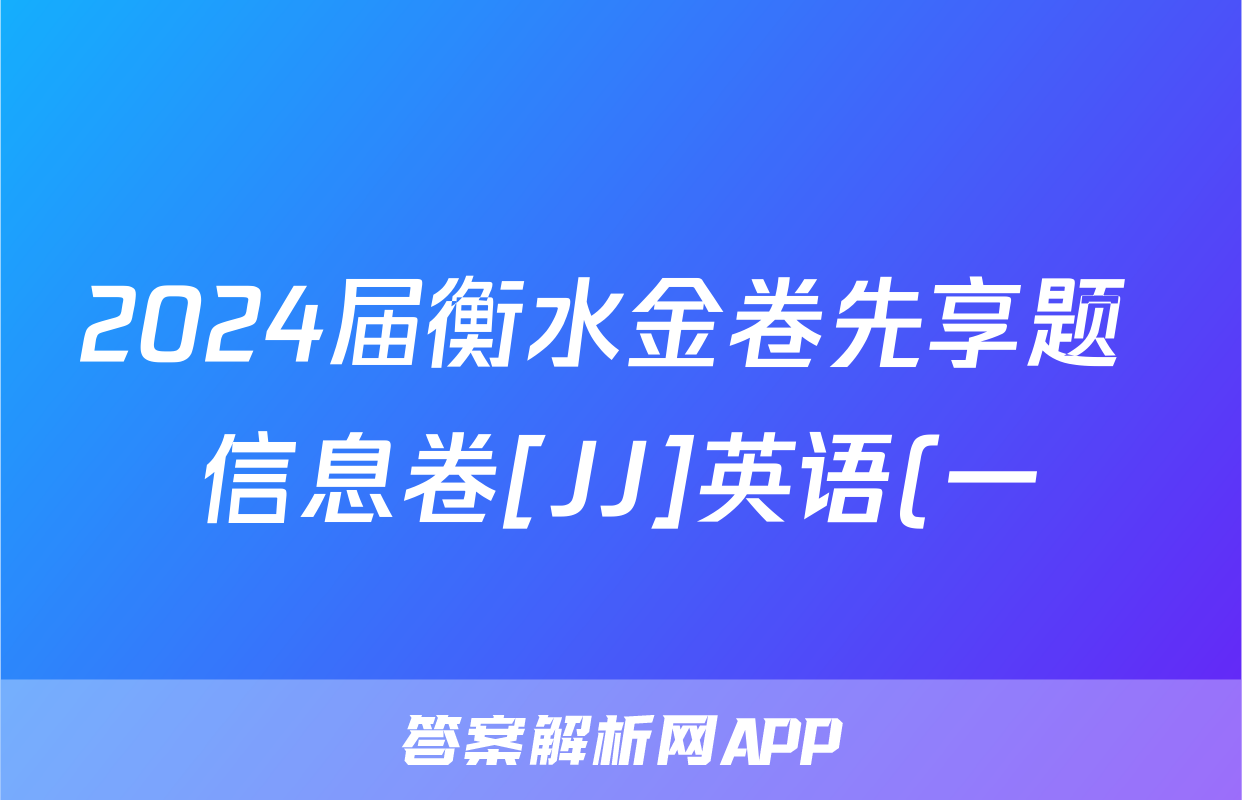 2024届衡水金卷先享题 信息卷[JJ]英语(一)1试题正在持续更新,目前2024届最新高考模拟示范卷答案网为大家整理了相关试题及答案,供大家查缺补漏,高效提升成绩。
