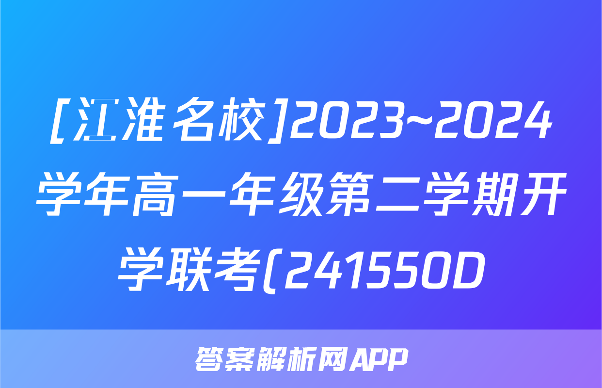 [江淮名校]2023~2024学年高一年级第二学期开学联考(241550D)生物答案正在持续更新,目前2024届最新高考模拟示范卷答案网为大家整理了相关试题及答案,供大家查缺补漏,高效提升成绩。