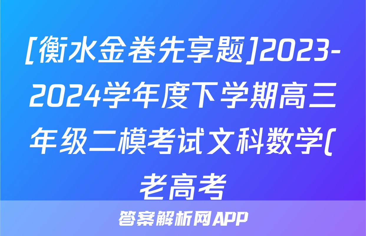 [衡水金卷先享题]2023-2024学年度下学期高三年级二模考试文科数学(老高考)试题正在持续更新,目前2024届最新高考模拟示范卷答案网为大家整理了相关试题及答案,供大家查缺补漏,高效提升成绩。