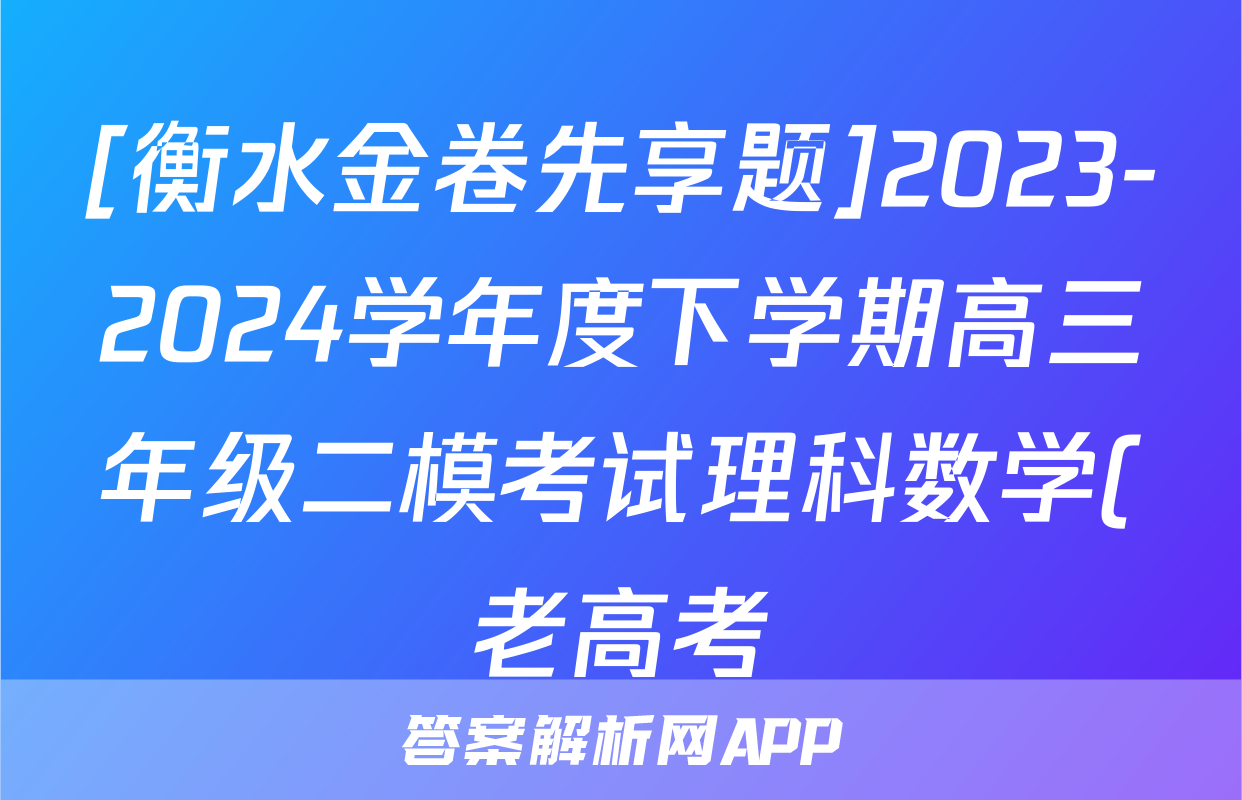 [衡水金卷先享题]2023-2024学年度下学期高三年级二模考试理科数学(老高考)试题正在持续更新,目前2024届最新高考模拟示范卷答案网为大家整理了相关试题及答案,供大家查缺补漏,高效提升成绩。