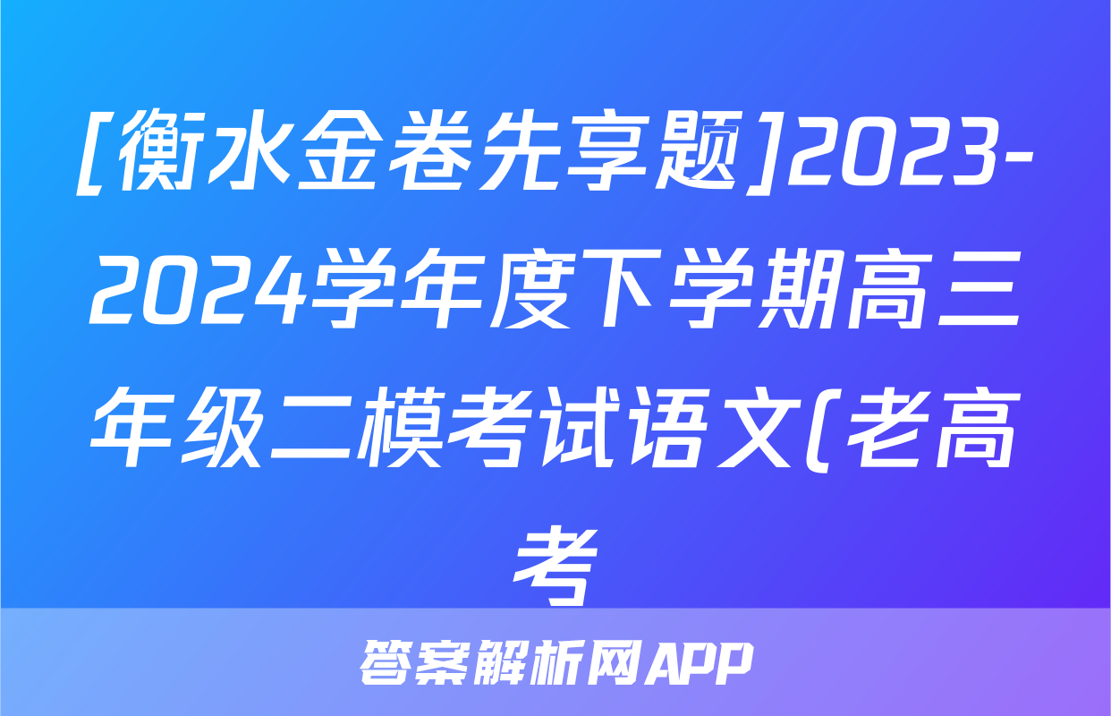 [衡水金卷先享题]2023-2024学年度下学期高三年级二模考试语文(老高考)试题正在持续更新,目前2024届最新高考模拟示范卷答案网为大家整理了相关试题及答案,供大家查缺补漏,高效提升成绩。