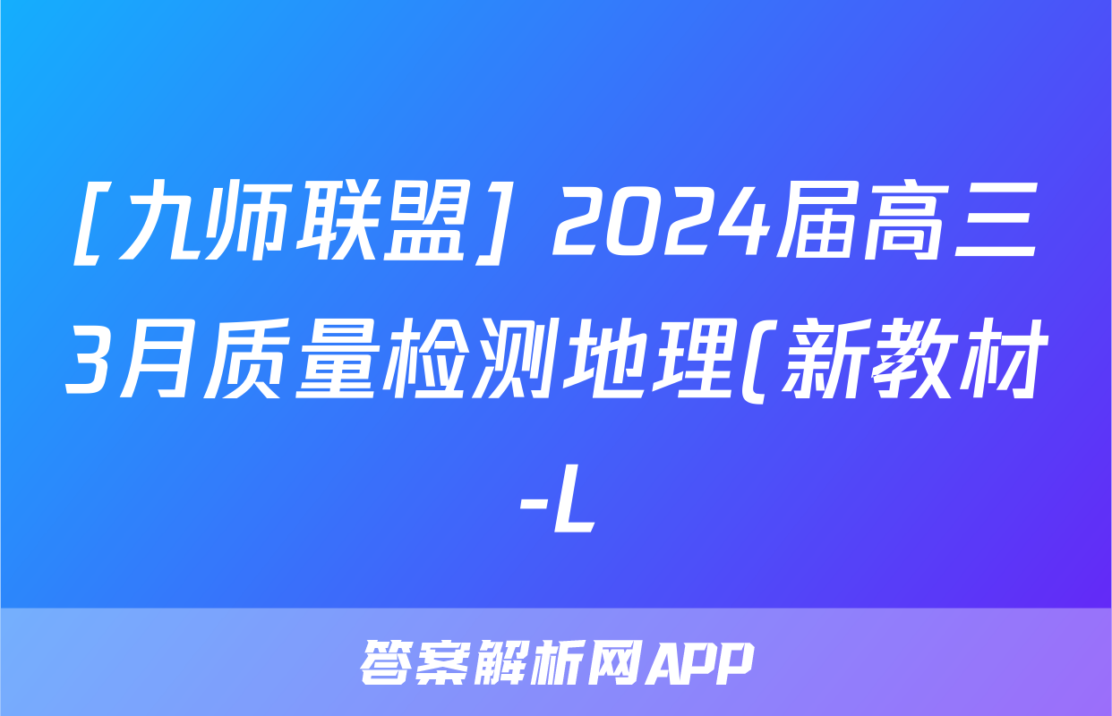 [九师联盟] 2024届高三3月质量检测地理(新教材-L)试题正在持续更新,目前2024届最新高考模拟示范卷答案网为大家整理了相关试题及答案,供大家查缺补漏,高效提升成绩。