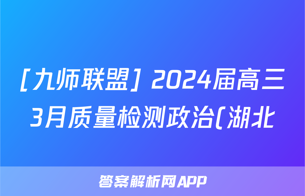 [九师联盟] 2024届高三3月质量检测政治(湖北)答案正在持续更新,目前2024届最新高考模拟示范卷答案网为大家整理了相关试题及答案,供大家查缺补漏,高效提升成绩。