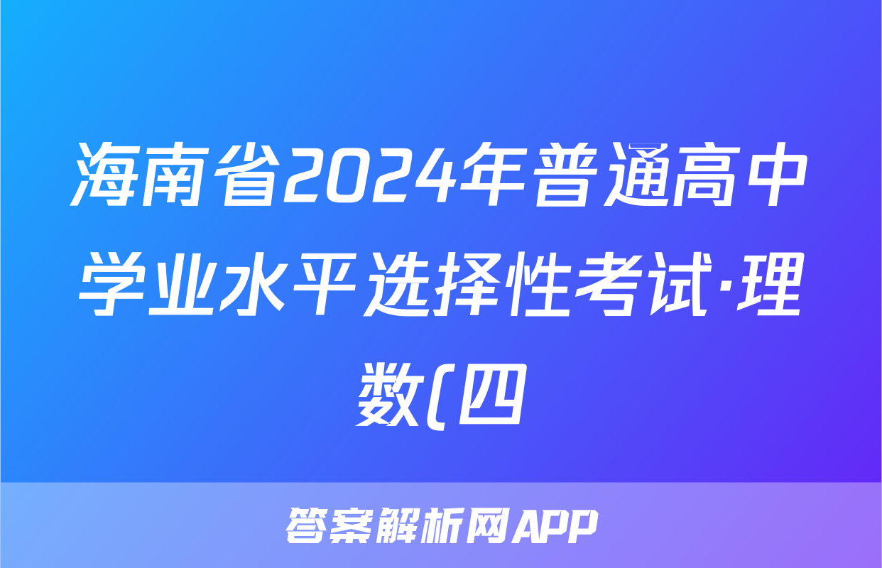 海南省2024年普通高中学业水平选择性考试·理数(四)4[24·(新高考)ZX·MNJ·理数·HAIN]答案正在持续更新,目前2024届最新高考模拟示范卷答案网为大家整理了相关试题及答案,供大家查缺补漏,高效提升成绩。