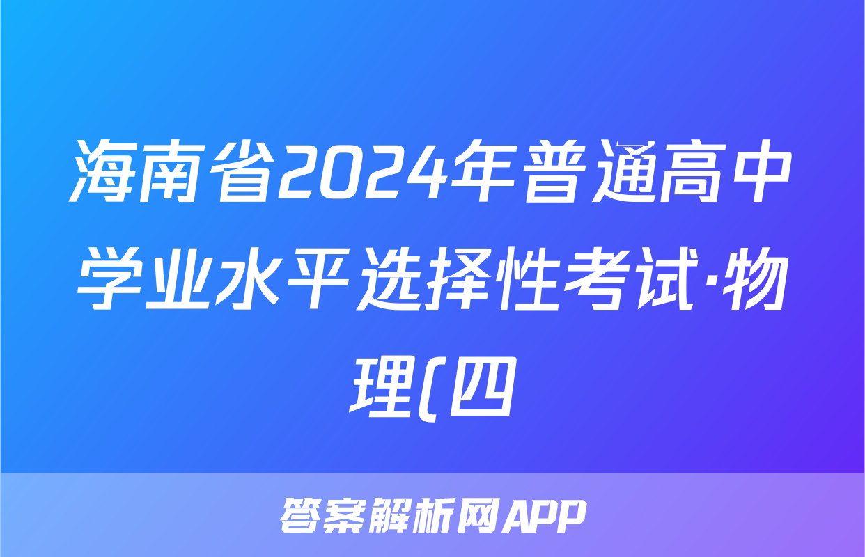 海南省2024年普通高中学业水平选择性考试·物理(四)4[24·(新高考)ZX·MNJ·物理·HAIN]试题