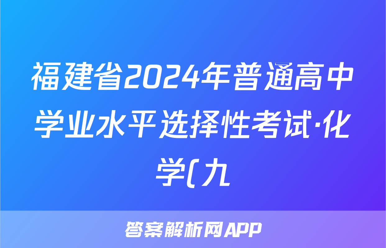 福建省2024年普通高中学业水平选择性考试·化学(九)9[24·(新高考)ZX·MNJ·化学·FJ]试题