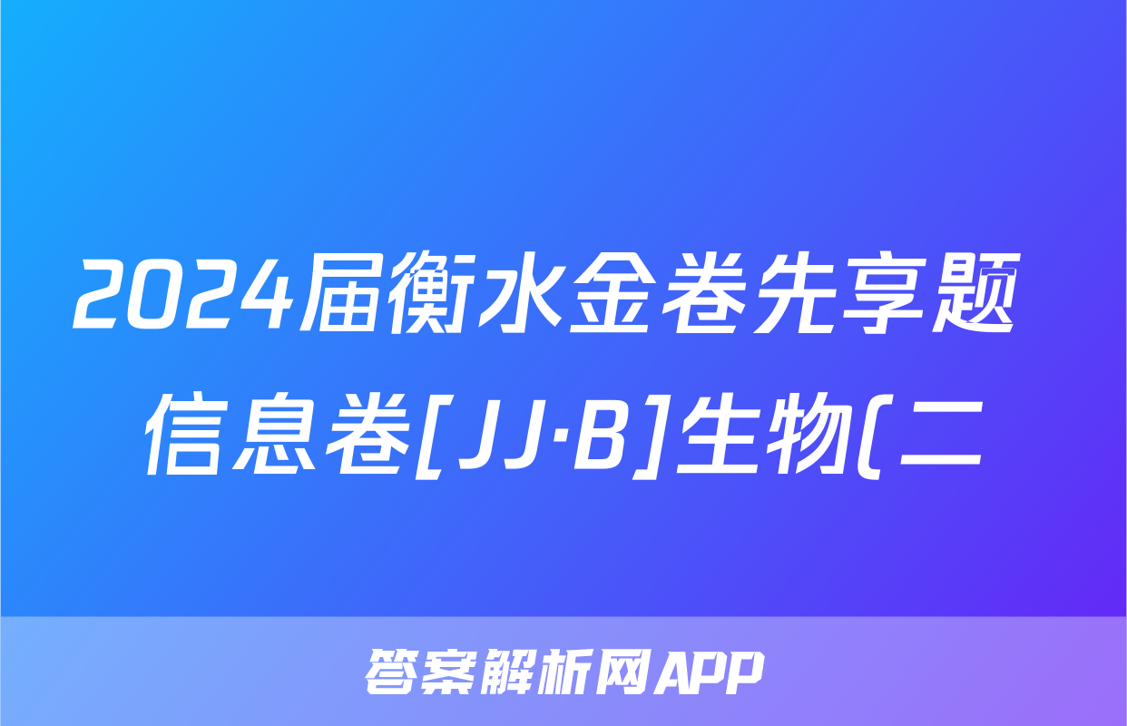 2024届衡水金卷先享题 信息卷[JJ·B]生物(二)2答案正在持续更新,目前2024届最新高考模拟示范卷答案网为大家整理了相关试题及答案,供大家查缺补漏,高效提升成绩。