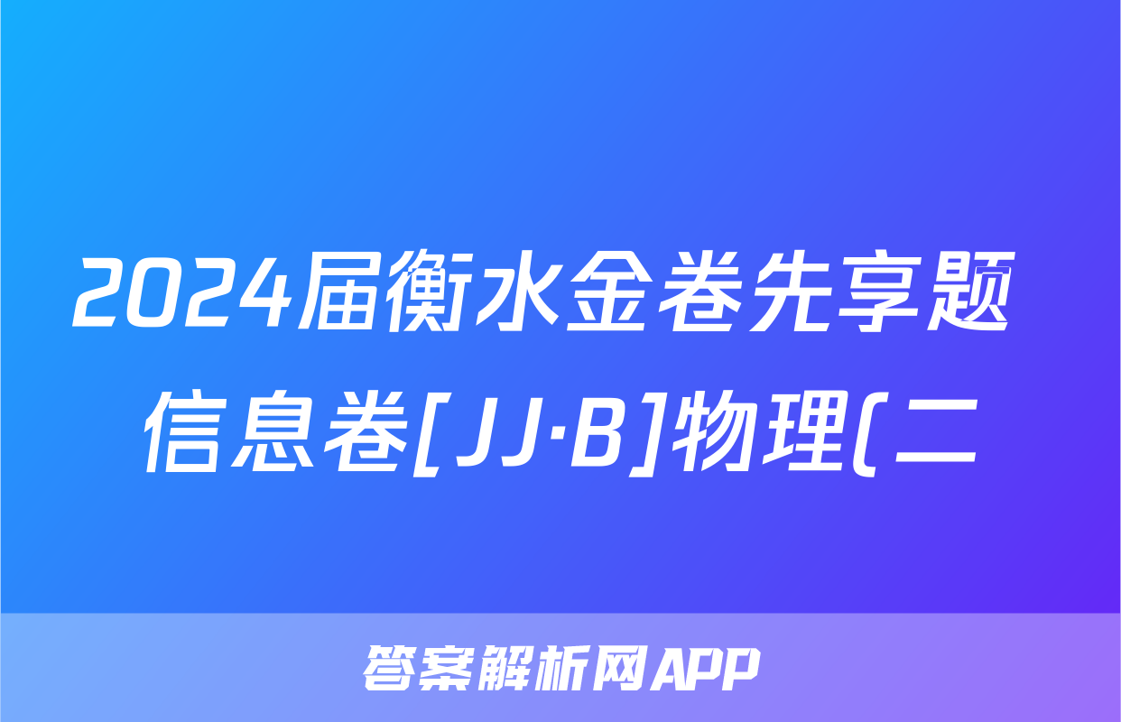 2024届衡水金卷先享题 信息卷[JJ·B]物理(二)2答案正在持续更新,目前2024届最新高考模拟示范卷答案网为大家整理了相关试题及答案,供大家查缺补漏,高效提升成绩。