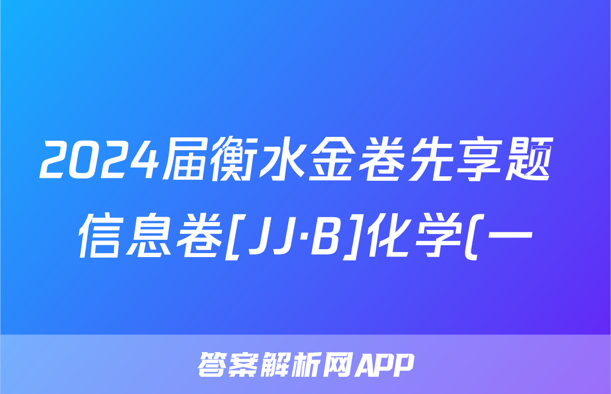 2024届衡水金卷先享题 信息卷[JJ·B]化学(一)1答案正在持续更新,目前2024届最新高考模拟示范卷答案网为大家整理了相关试题及答案,供大家查缺补漏,高效提升成绩。