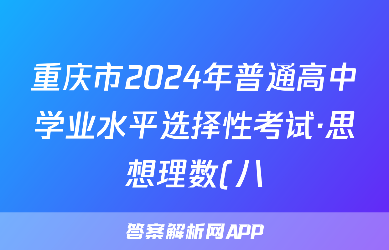重庆市2024年普通高中学业水平选择性考试·思想理数(八)8[24·(新高考)ZX·MNJ·思想理数·CQ]试题正在持续更新,目前2024届最新高考模拟示范卷答案网为大家整理了相关试题及答案,供大家查缺补漏,高效提升成绩。