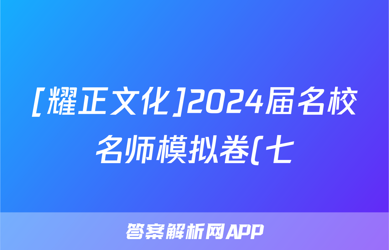 [耀正文化]2024届名校名师模拟卷(七)7物理答案正在持续更新,目前2024届最新高考模拟示范卷答案网为大家整理了相关试题及答案,供大家查缺补漏,高效提升成绩。
