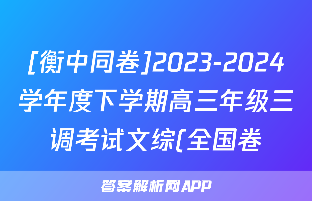 [衡中同卷]2023-2024学年度下学期高三年级三调考试文综(全国卷)试题