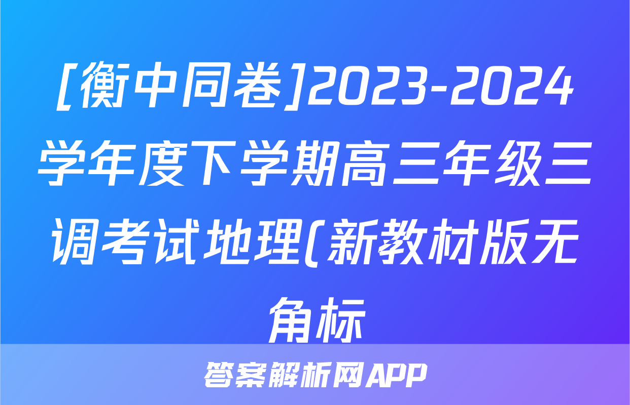 [衡中同卷]2023-2024学年度下学期高三年级三调考试地理(新教材版无角标)试题正在持续更新,目前2024届最新高考模拟示范卷答案网为大家整理了相关试题及答案,供大家查缺补漏,高效提升成绩。