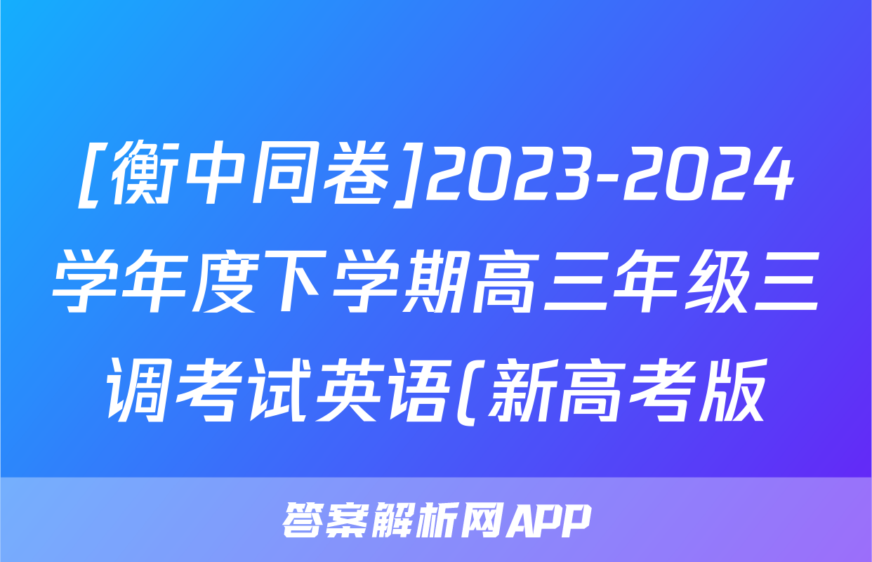[衡中同卷]2023-2024学年度下学期高三年级三调考试英语(新高考版)答案正在持续更新,目前2024届最新高考模拟示范卷答案网为大家整理了相关试题及答案,供大家查缺补漏,高效提升成绩。