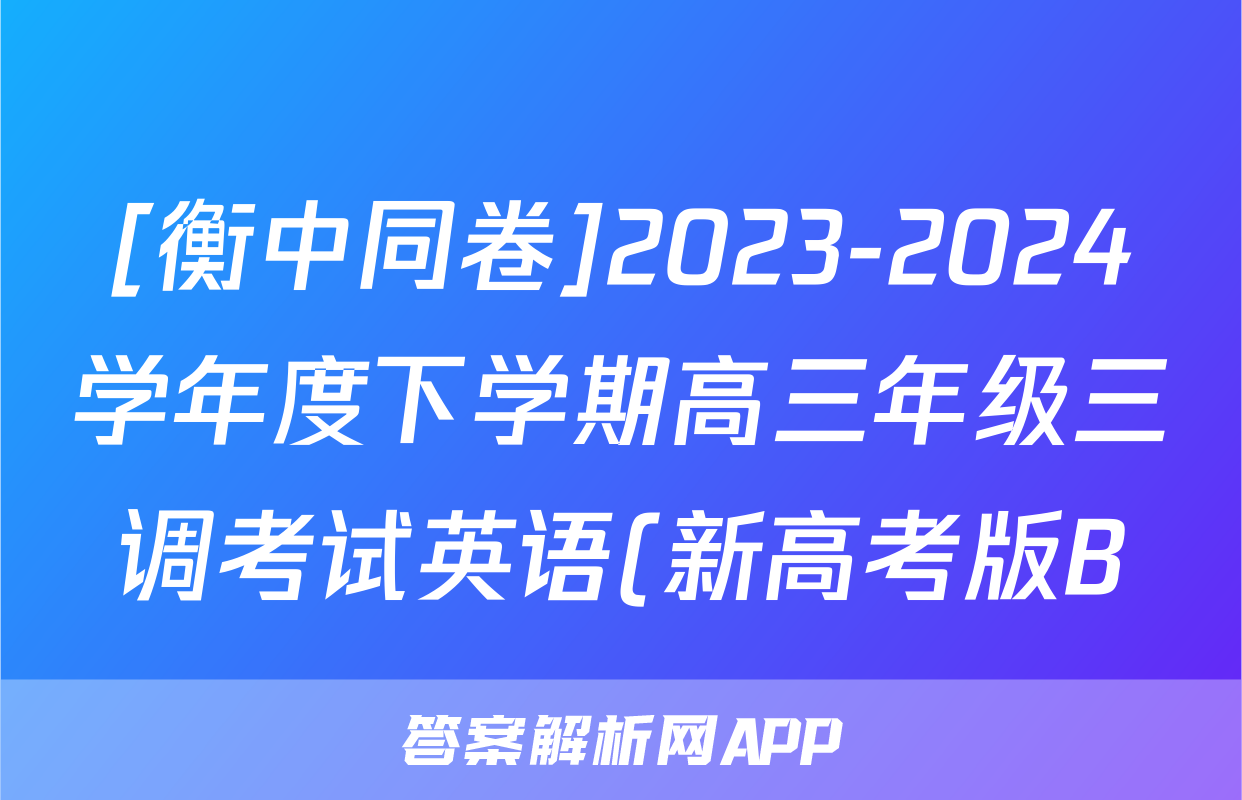[衡中同卷]2023-2024学年度下学期高三年级三调考试英语(新高考版B)答案正在持续更新,目前2024届最新高考模拟示范卷答案网为大家整理了相关试题及答案,供大家查缺补漏,高效提升成绩。