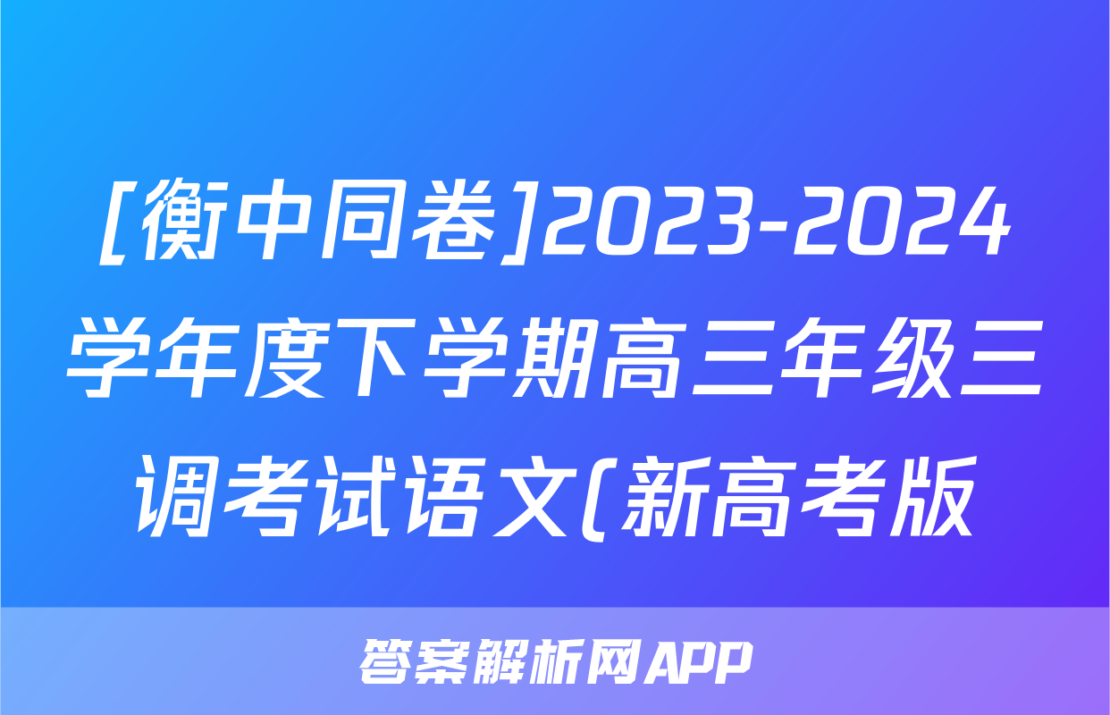 [衡中同卷]2023-2024学年度下学期高三年级三调考试语文(新高考版)答案正在持续更新,目前2024届最新高考模拟示范卷答案网为大家整理了相关试题及答案,供大家查缺补漏,高效提升成绩。