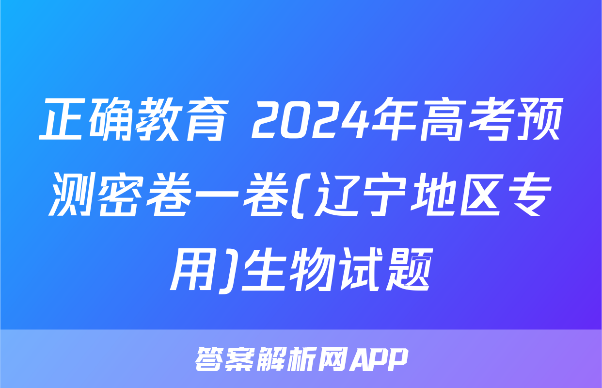 正确教育 2024年高考预测密卷一卷(辽宁地区专用)生物试题正在持续更新,目前2024届最新高考模拟示范卷答案网为大家整理了相关试题及答案,供大家查缺补漏,高效提升成绩。