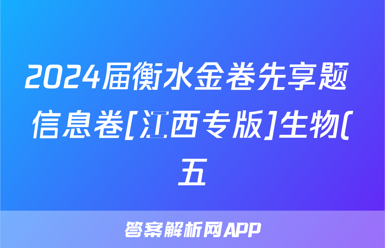 2024届衡水金卷先享题 信息卷[江西专版]生物(五)5答案正在持续更新,目前2024届最新高考模拟示范卷答案网为大家整理了相关试题及答案,供大家查缺补漏,高效提升成绩。