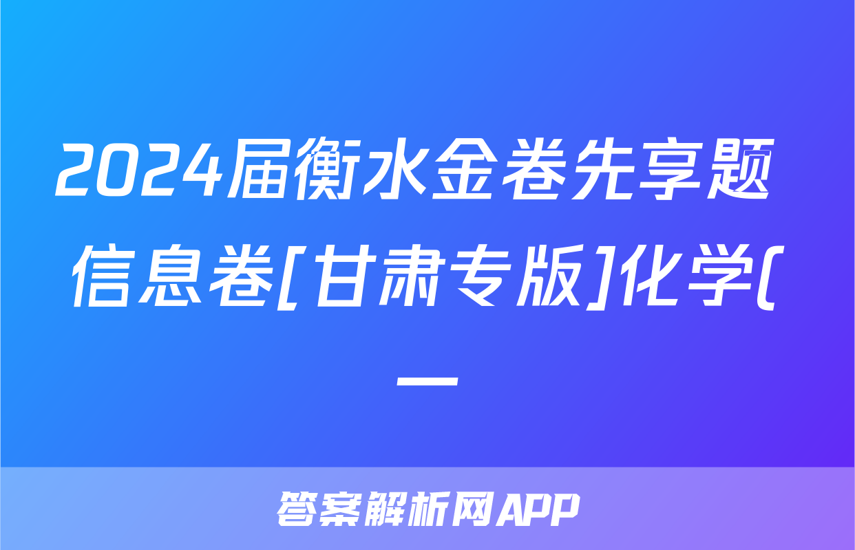 2024届衡水金卷先享题 信息卷[甘肃专版]化学(一)1试题正在持续更新,目前2024届最新高考模拟示范卷答案网为大家整理了相关试题及答案,供大家查缺补漏,高效提升成绩。