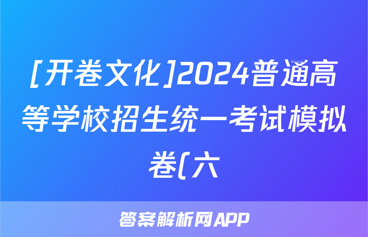 [开卷文化]2024普通高等学校招生统一考试模拟卷(六)6语文XQ试题正在持续更新,目前2024届最新高考模拟示范卷答案网为大家整理了相关试题及答案,供大家查缺补漏,高效提升成绩。