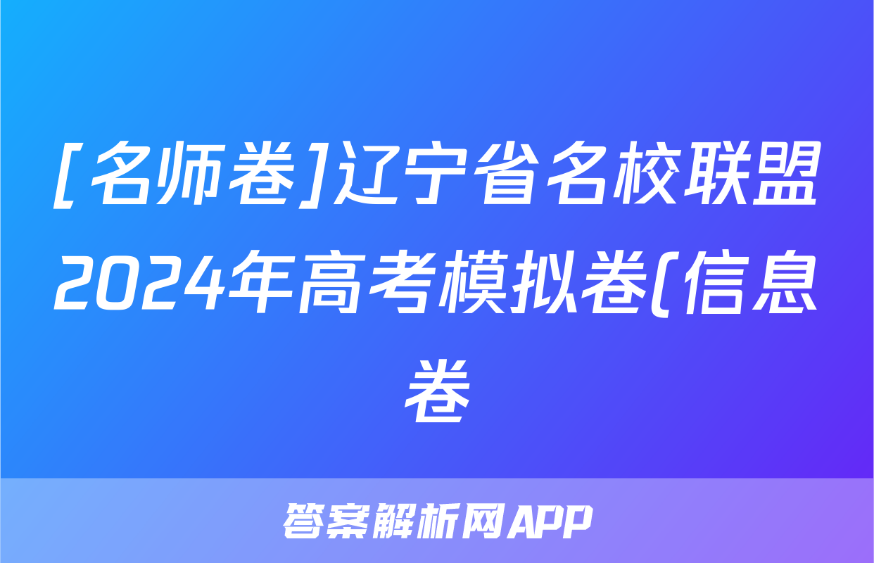 [名师卷]辽宁省名校联盟2024年高考模拟卷(信息卷)(一)1化学(辽宁省)答案正在持续更新,目前2024届最新高考模拟示范卷答案网为大家整理了相关试题及答案,供大家查缺补漏,高效提升成绩。