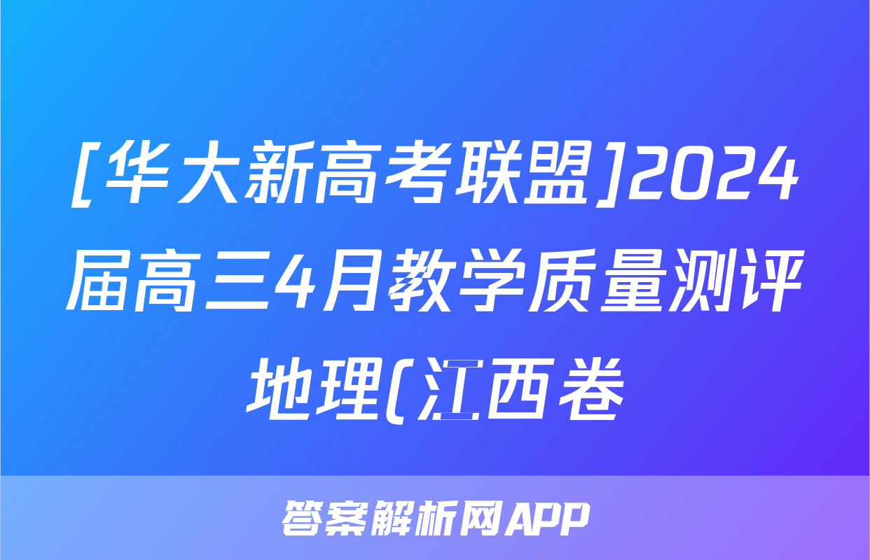 [华大新高考联盟]2024届高三4月教学质量测评地理(江西卷)答案正在持续更新,目前2024届最新高考模拟示范卷答案网为大家整理了相关试题及答案,供大家查缺补漏,高效提升成绩。