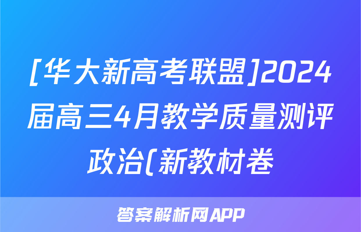 [华大新高考联盟]2024届高三4月教学质量测评政治(新教材卷)答案正在持续更新,目前2024届最新高考模拟示范卷答案网为大家整理了相关试题及答案,供大家查缺补漏,高效提升成绩。