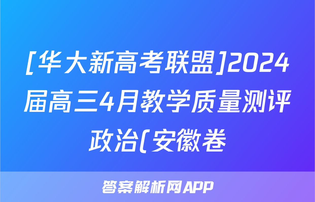 [华大新高考联盟]2024届高三4月教学质量测评政治(安徽卷)答案正在持续更新,目前2024届最新高考模拟示范卷答案网为大家整理了相关试题及答案,供大家查缺补漏,高效提升成绩。