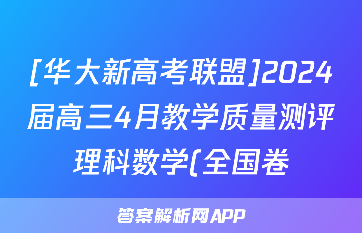 [华大新高考联盟]2024届高三4月教学质量测评理科数学(全国卷)答案正在持续更新,目前2024届最新高考模拟示范卷答案网为大家整理了相关试题及答案,供大家查缺补漏,高效提升成绩。