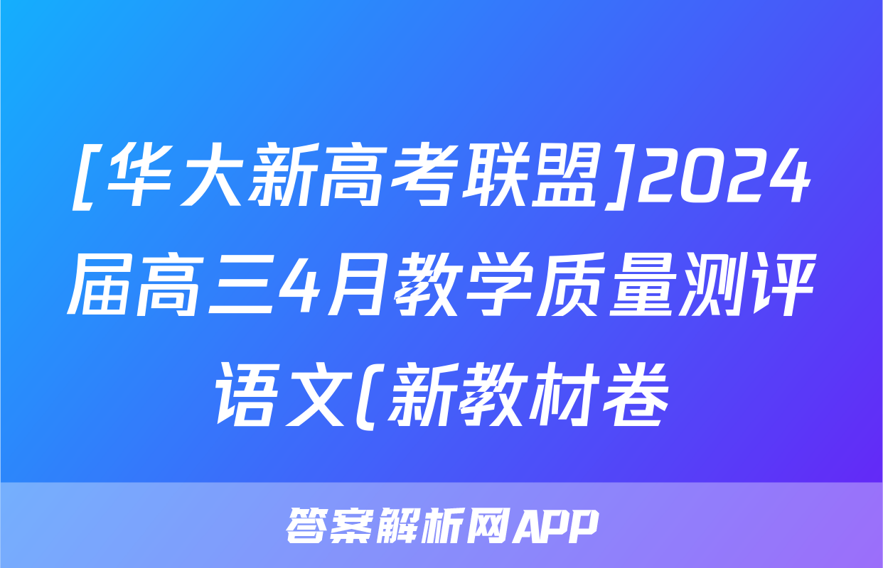 [华大新高考联盟]2024届高三4月教学质量测评语文(新教材卷)答案正在持续更新,目前2024届最新高考模拟示范卷答案网为大家整理了相关试题及答案,供大家查缺补漏,高效提升成绩。