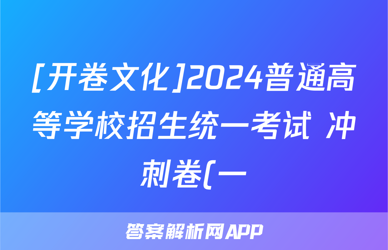 [开卷文化]2024普通高等学校招生统一考试 冲刺卷(一)1语文(HN)试题正在持续更新,目前2024届最新高考模拟示范卷答案网为大家整理了相关试题及答案,供大家查缺补漏,高效提升成绩。