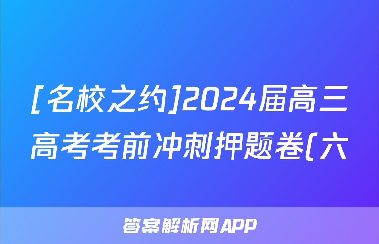 [名校之约]2024届高三高考考前冲刺押题卷(六)6新课标文综答案正在持续更新,目前2024届最新高考模拟示范卷答案网为大家整理了相关试题及答案,供大家查缺补漏,高效提升成绩。
