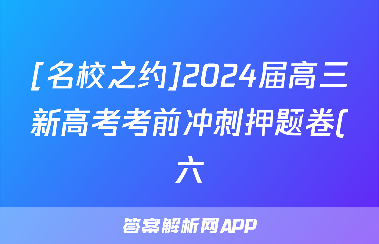 [名校之约]2024届高三新高考考前冲刺押题卷(六)6物理答案正在持续更新,目前2024届最新高考模拟示范卷答案网为大家整理了相关试题及答案,供大家查缺补漏,高效提升成绩。